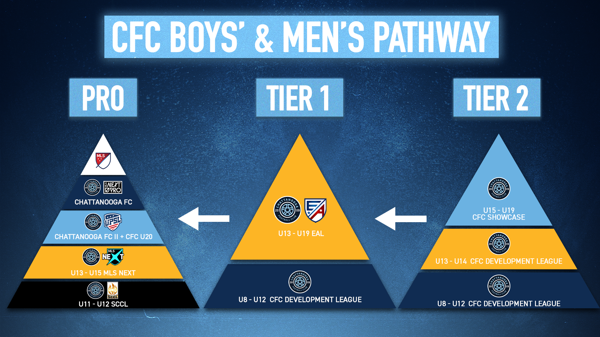 Chattanooga FC Youth pathways are designed to serve more youth soccer athletes in Chattanooga and to target all appropriate pathways for athletes from grassroots to elite and professional levels.